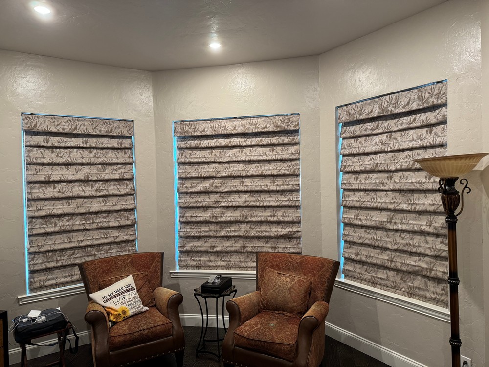Chris and his wife were interested in updating their Primary Bedroom and Guest Bedroom shades in their Lakewood Village home. The bedrooms had Honeycomb Shades and they were eager to add more elegance while still keeping the heat and light out. Together, we selected motorized Roman Shades as the replacement. With a wide selection of fabrics available to choose from, they were able to find one that fit each room's style perfectly. Chris opted for a motorized wand instead of remote operation. This fits their needs best as it provides safe and easy access for reaching the charging port during the times they will need to recharge the shades' internal batteries.